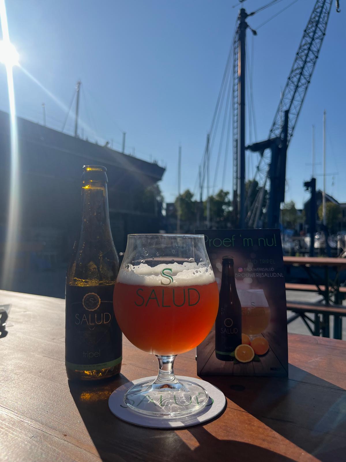 Kom langs, hef je glas en ontdek waarom Salud Tripel de perfecte begeleider is van een gezellige avond aan de haven.